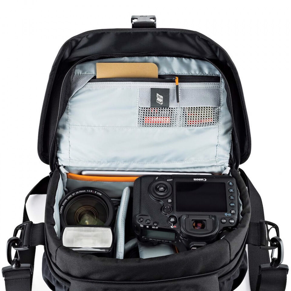Our iconic Nova camera bag continues to evolve to protect the latest in camera technology. The newest edition of this timeless camera shoulder bag maintains premium protection from the elements for a DSLR camera with attached 24-105mm lens plus 1-2 additional lenses and flash or compact photo drone.