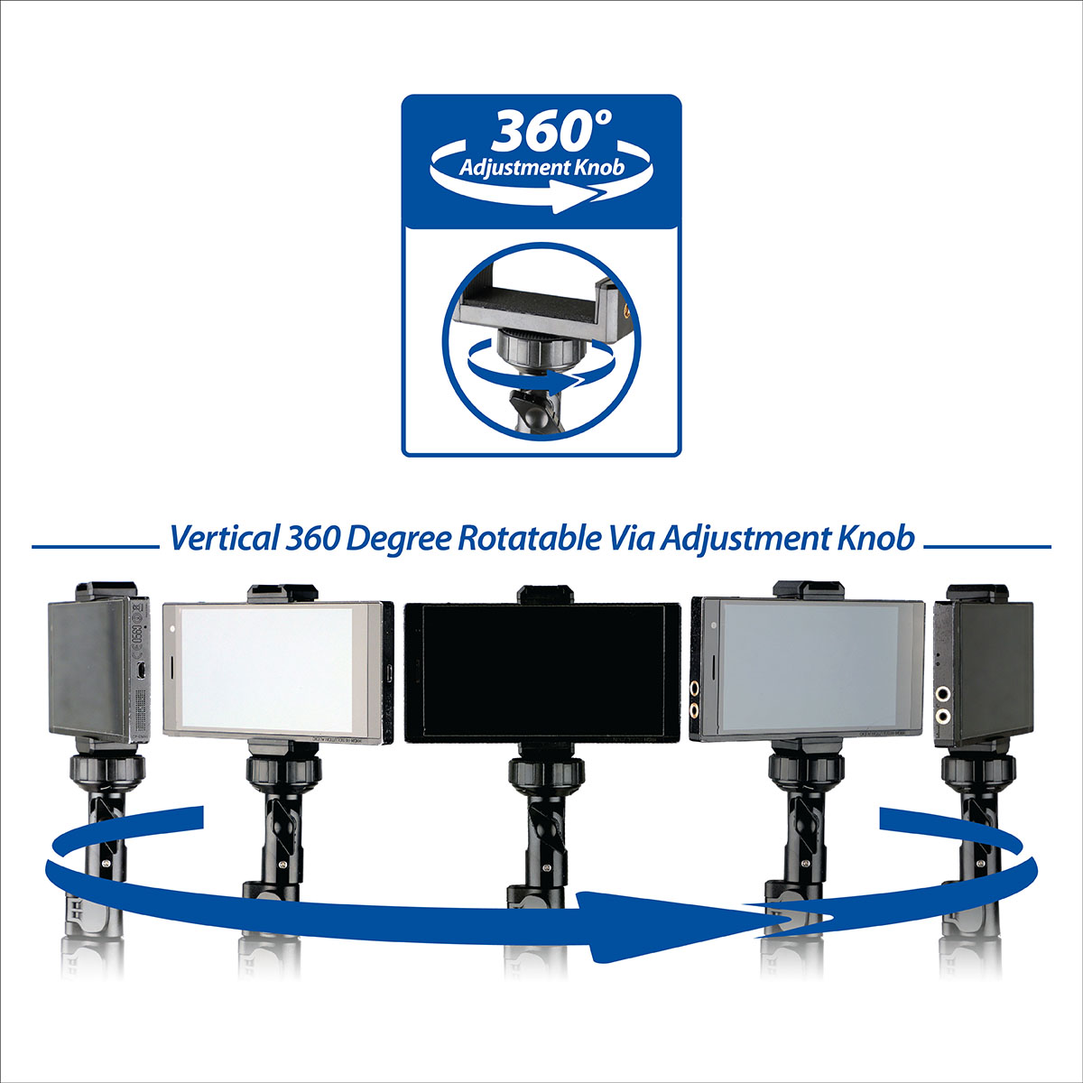 - Vertical 360° adjustment knob