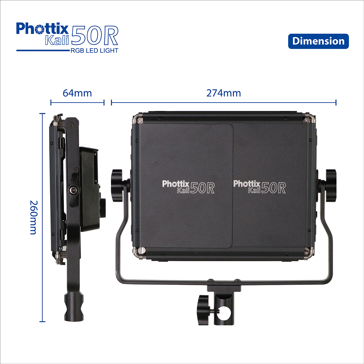 The Phottix Kali Series – Kali50R LED build-in Phottix LED Ecosystem (ECO4) features a remote control and remains committed to the latest in flicker-free LED technology and leading colour high accuracy of CRI96+ with 100pcs warm colour, 100pcs cool colour and 108pcs RGB LED bulbs (2500K-8500K). It provides a maximum brightness of 1000Lux (40W) output power in a durable aviation-grade aluminium shell. ECO4 can be compatible with ECO1 and ECO3 products.