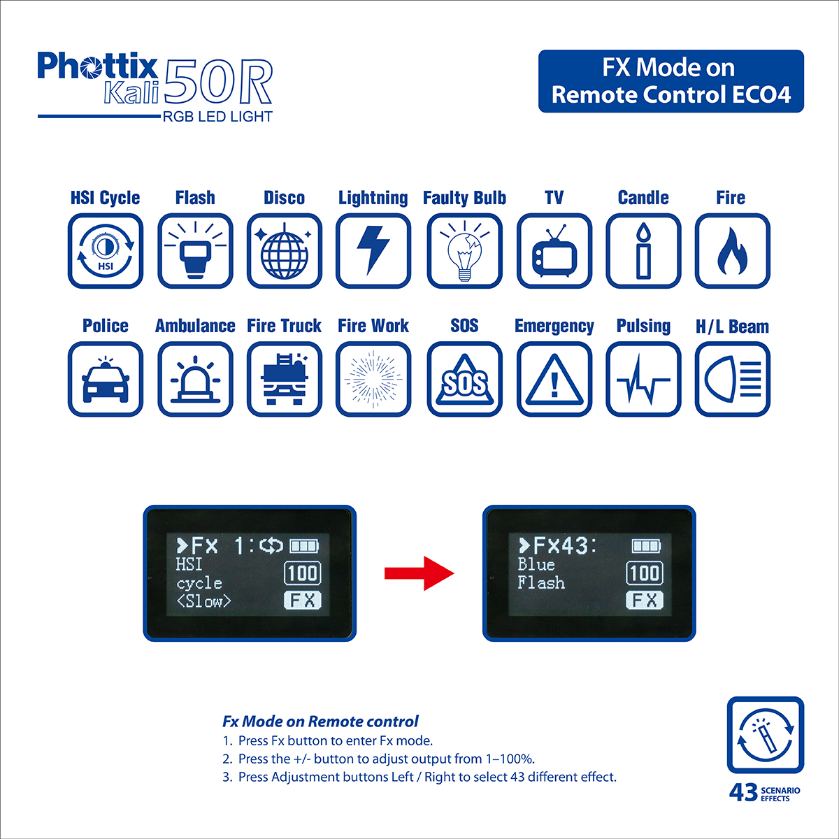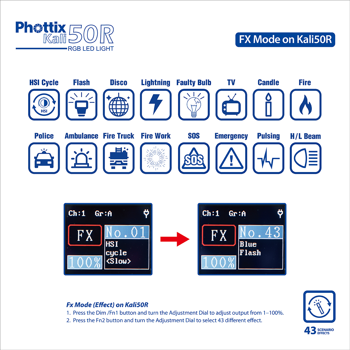 - 43 preset scenario effects
