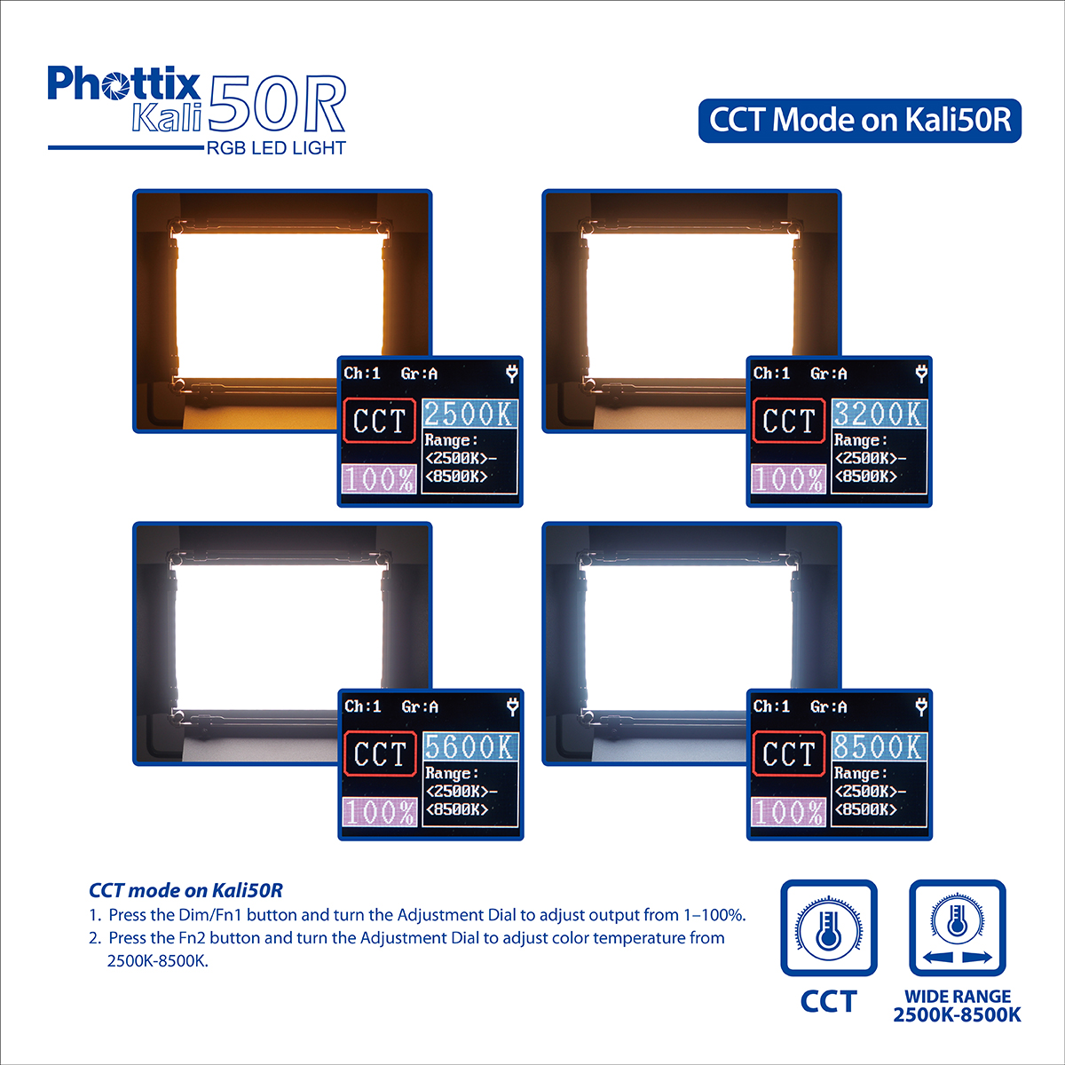 - Colour Temperature : 2500K - 8500K
