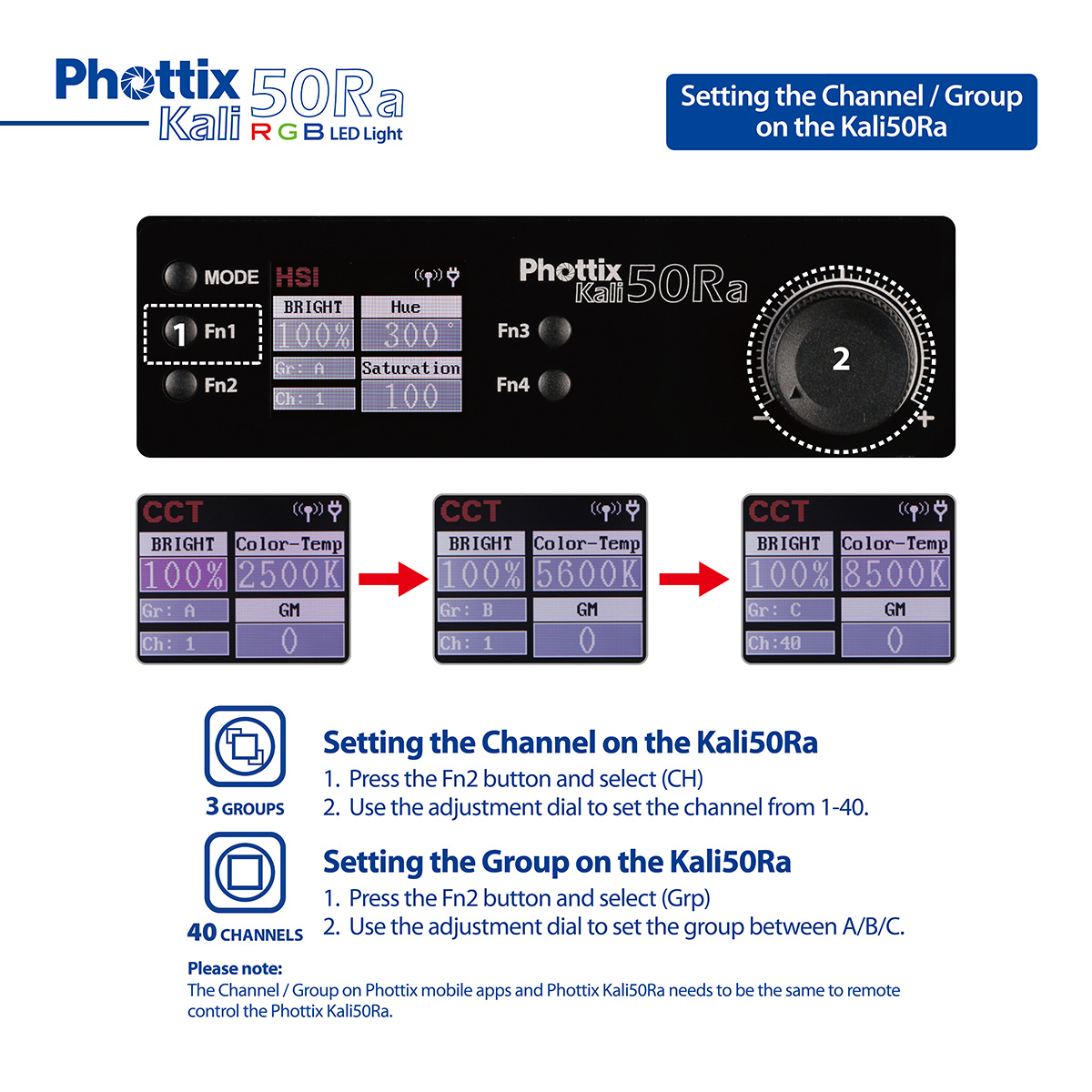 - Phottix Mobile Apps for Bluetooth remote control with 3 groups and 40 channels