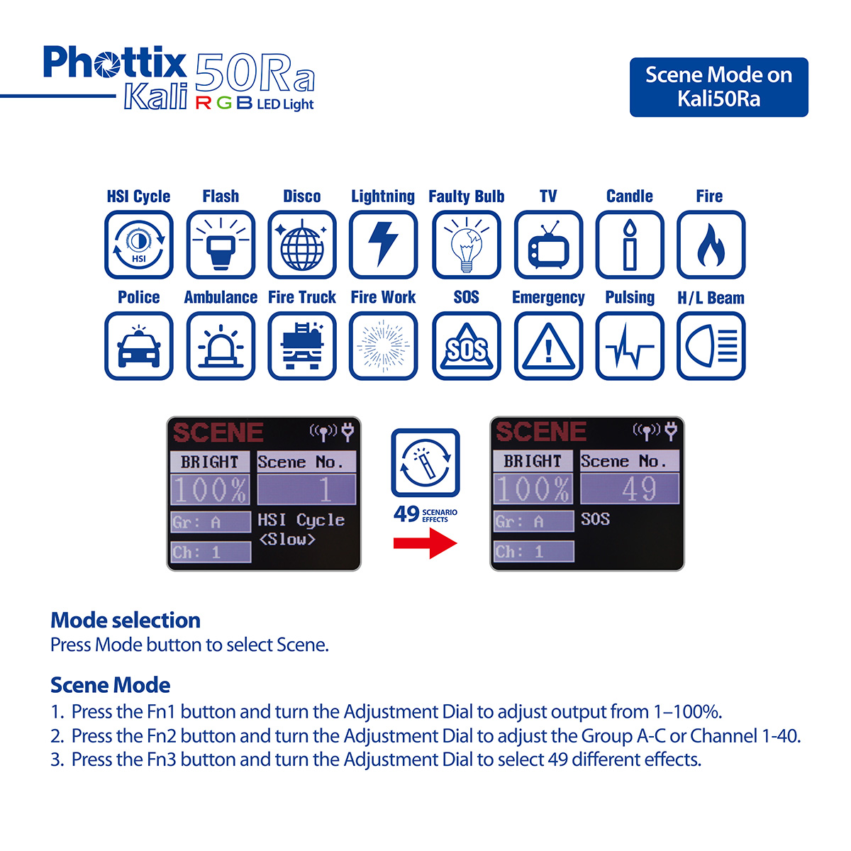 - 49 preset scenario effects