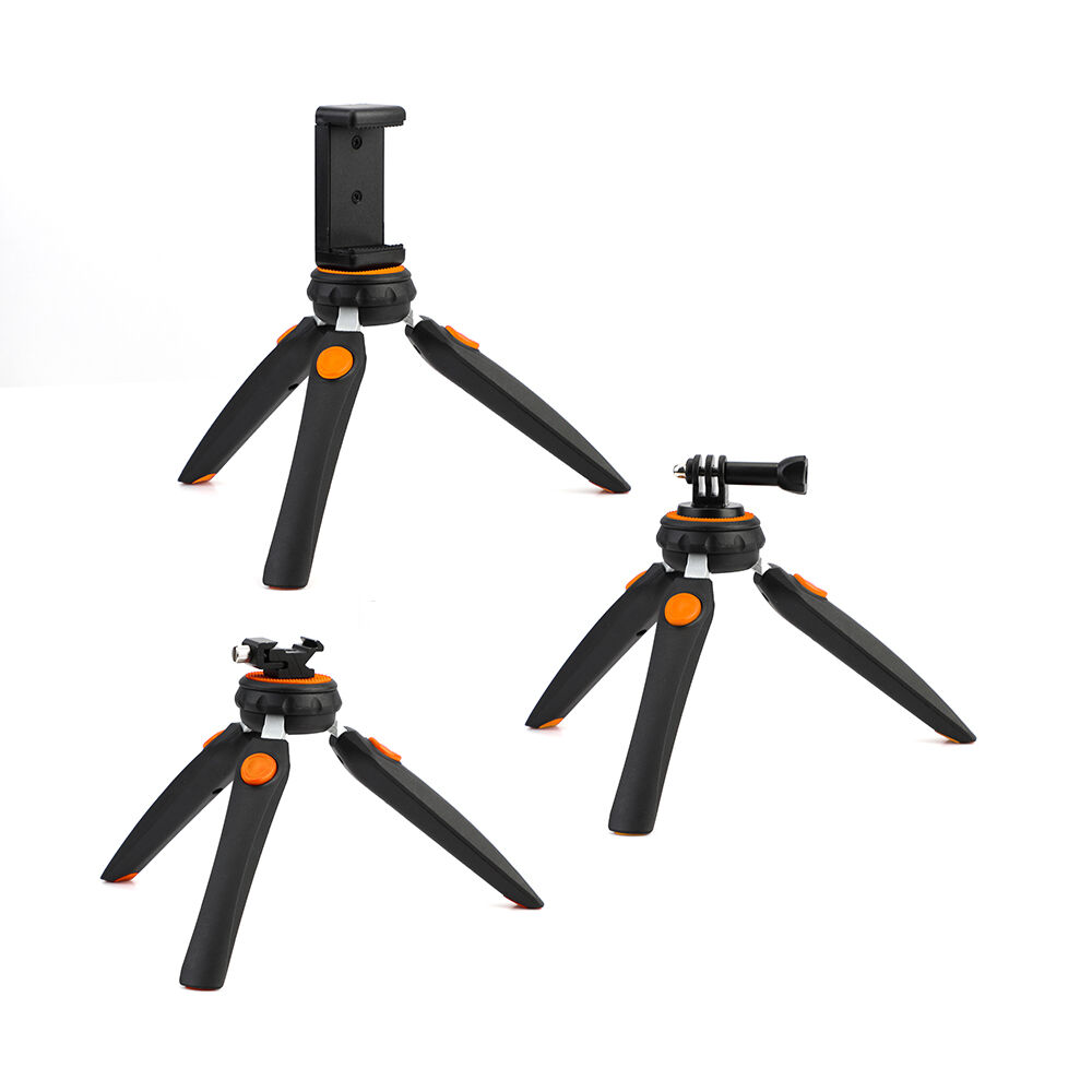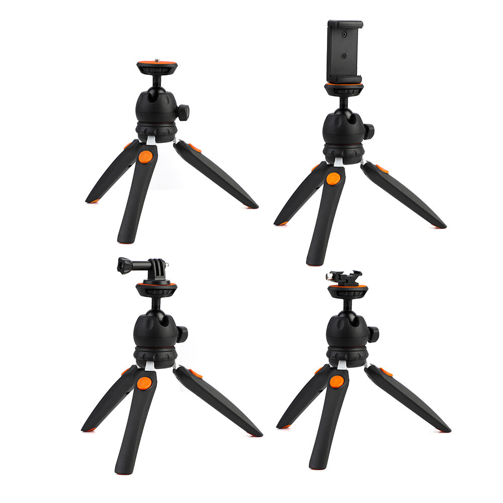 The unique 5-in-1 design kit set includes the ball head, phone holder, GoPro adaptor and cold shoe, which can be removed and installed on another tripod with 1/4″ screws.