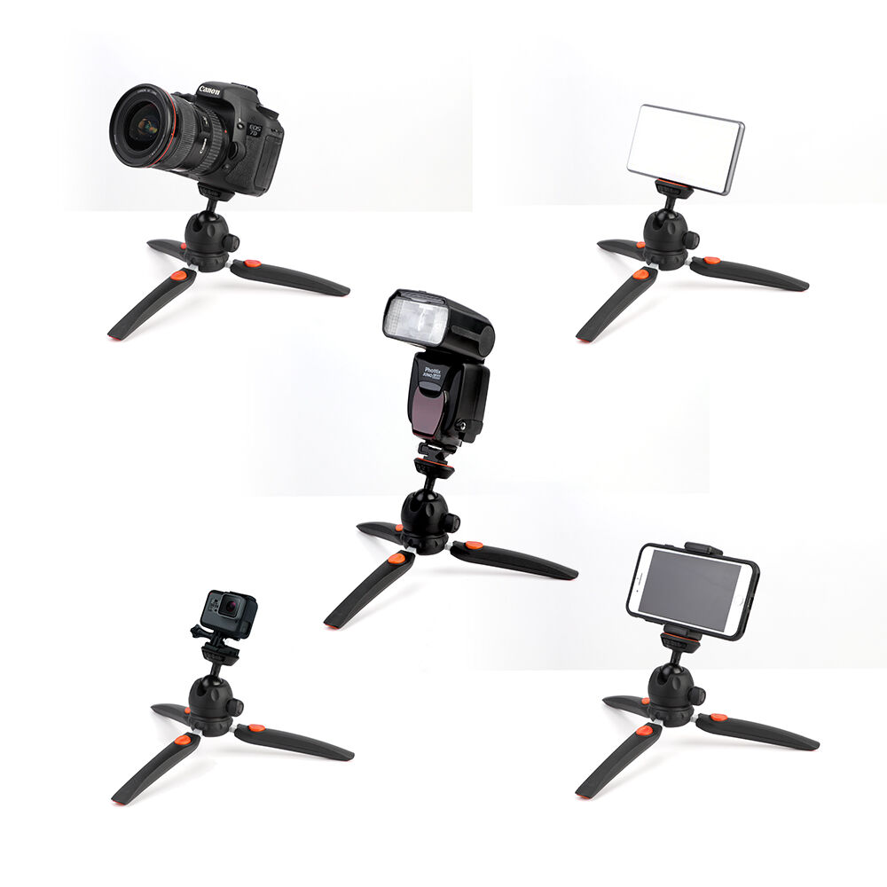The standard 1/4″ screw lock is compatible with DSLR/mirrorless cameras, DV, action cameras, LED video lights, projector, webcam, GoPro devices, hot shoe flash lights, smartphones and microphones.
