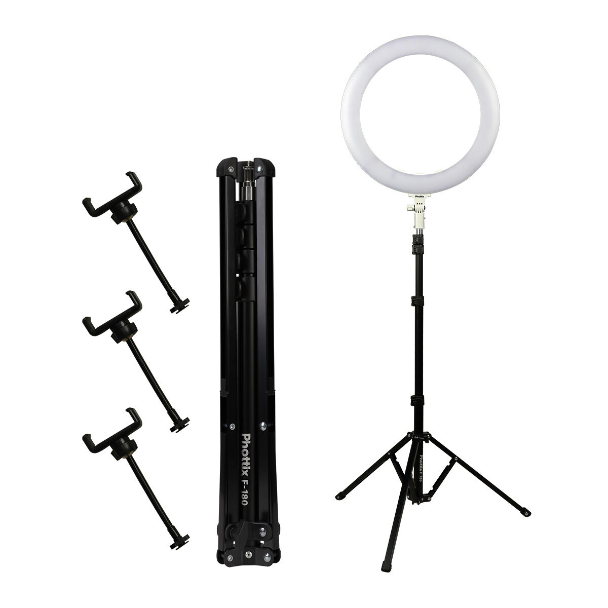 This versatile ring light features three cold shoe mounts to provide a range of mounting positions for digital cameras, smartphones, microphones and other accessories. It also includes a three smartphone clip, providing a variety of shooting options for photography, video or live streaming and broadcast applications.