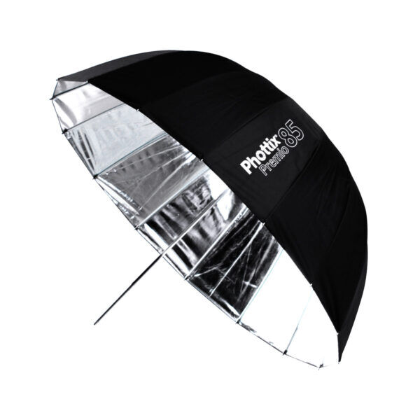 The Premio series reflective models are available in 85cm, 105cm, 120cm and 165cm sizes. The umbrellas feature heavy-duty construction, made with fibreglass spokes for cleaner catch-lights and enhanced durability that will stand up to the rigors of on location work as well as in the studio.