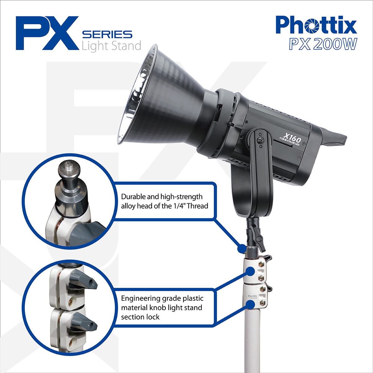 - Engineering grade plastic material knob light stand section lock
