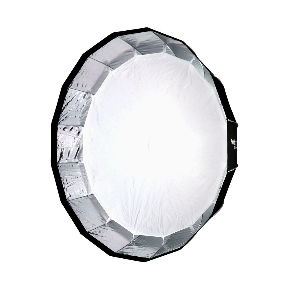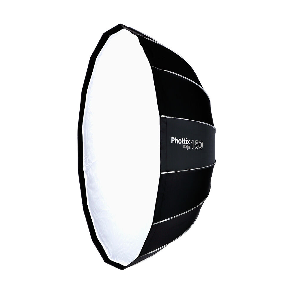 The Phottix Raja 150 Softbox – Super-Big, Easy-Set-up, Super-soft light with zero hassles. The Phottix Raja 150 features the Raja’s patented quick set-up design – opening like an umbrella and effortlessly locking into place.