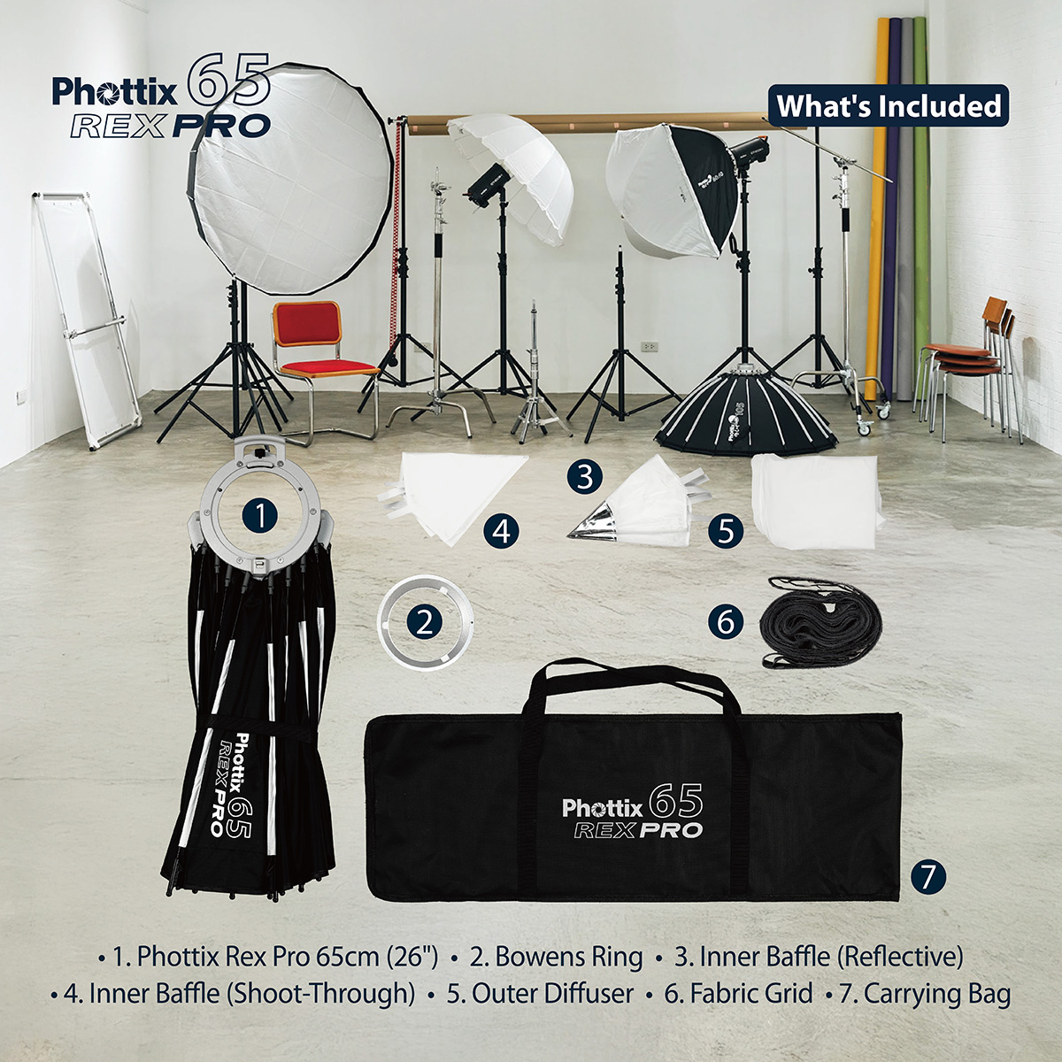 - Rex Pro series Softbox available in 4 sizes and styles