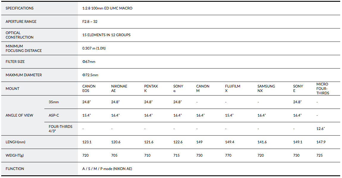 - A bright F2.8 maximum aperture is useful for working in a variety of lighting conditions and the minimum F32 aperture helps to attain a long depth of field when working with close-up subjects.