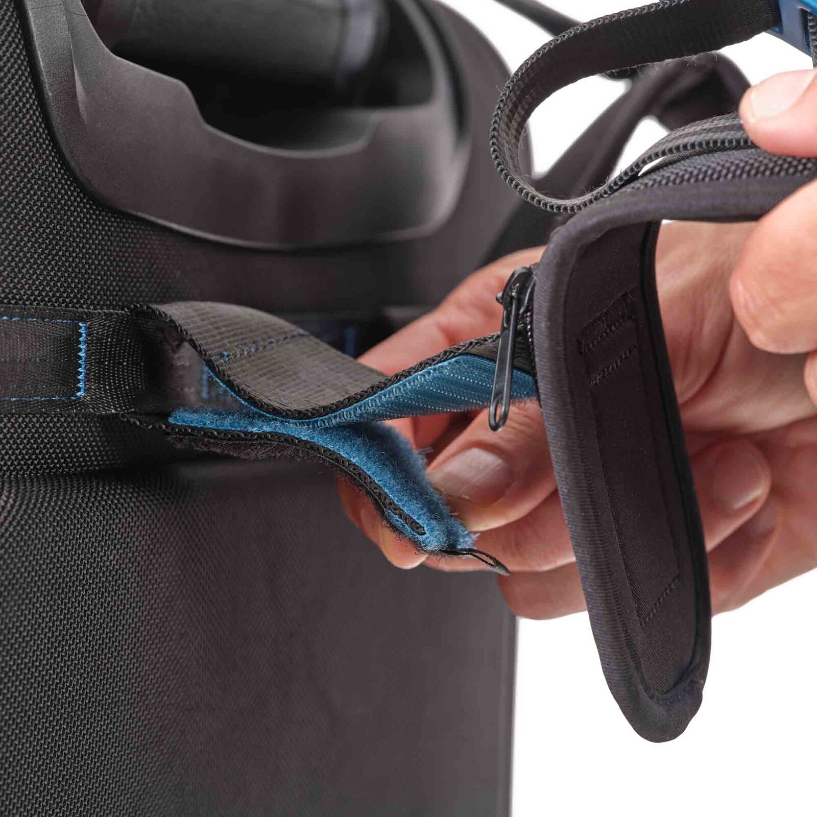 Carry a Tenba Roadie Spinner case comfortably over any terrain with these removable Backpack Straps. The straps attach in under thirty seconds and detach in under ten. They mount securely to the Roadie, and the mounting hardware has been tested to withstand loads over 100lb (40kg), which is the more than the case could ever hold in camera equipment. Built-in strap keepers ensure that the Roadie can be rolled smoothly with the straps attached, either when pushed on four wheels or tilted back to roll on two. The Backpack Straps fold to neatly tuck away inside the Roadie so they are available whenever you need them. Being able to fully remove the straps means never having to carry the 1-2" (2.5-5cm) of bulk at the back of the case (as when backpack straps are permanently installed) which can push the case dimensions beyond airline carry-on regulations. The Roadie Backpack Straps are a game-changer for the content creator whose day of shooting includes everything from airports and corporate buildings to sandy beaches and muddy trails.