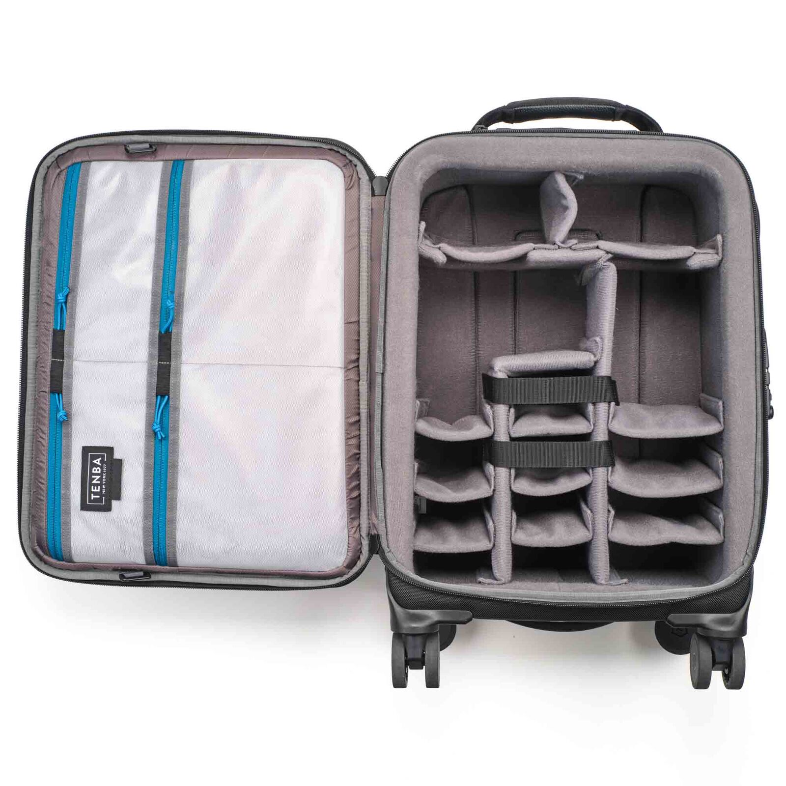 - WIDE TRAK WHEELS WITH CLOUDDRIVE - Tenba’s custom-designed and patent-pending spinner wheels extend out underneath the front laptop sleeve for unmatched stability. Carbon steel bearings and elastic, shock-absorbing wheels ensure smooth, quiet rolling across all surfaces. Wheels are user replaceable if they ever get damaged.